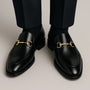 The Caernarfon – Svarta läderloafers med hästbit-detalj för herr