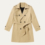 Egenskaper: Dubbelknäppt stängning, klassisk slagkrage, justerbart bälte och djupa fickor