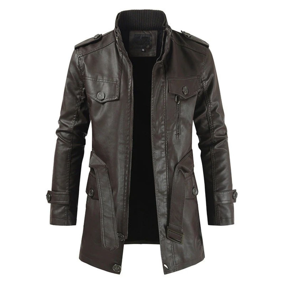 Den klassiska läderjackan för män – varm vinterrock – ger tidlös elegans med en djärv, maskulin touch. Den är tillverkad med omsorg om detaljerna och har en elegant silhuett och strukturerad finish, vilket gör den till ett måste i varje modern garderob. Den är stark men ändå raffinerad och utformad för att balansera komfort och bestående stil.
