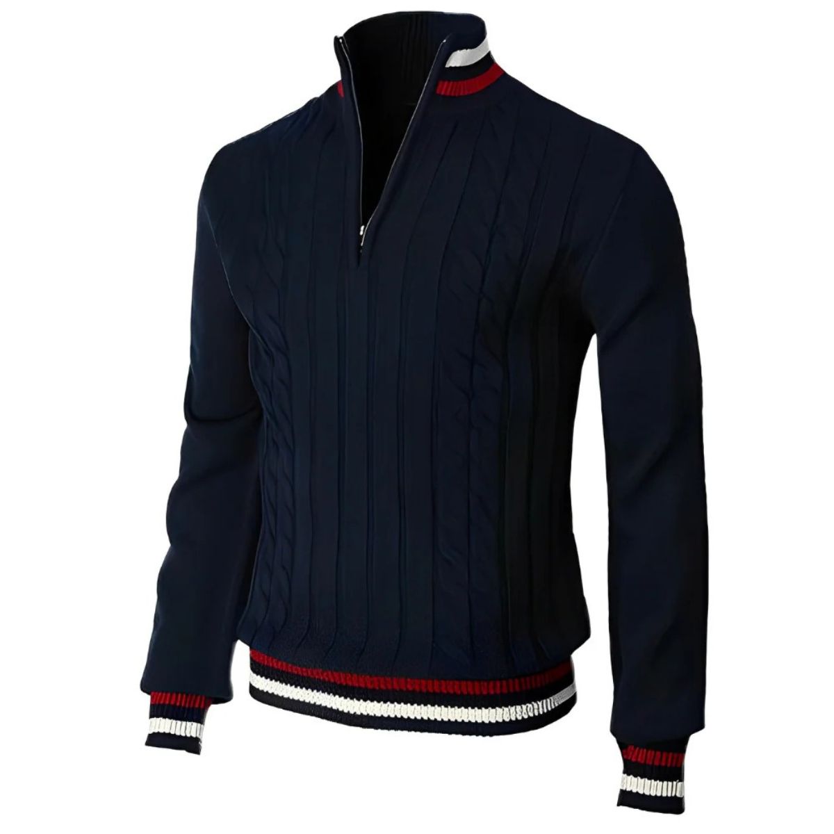 Denna stickade tröja är ett raffinerat basplagg med en modern twist och har en snygg dragkedja vid halsen som ger både mångsidighet och edge. Den fint vävda strukturen ger en mjuk och bekväm känsla samtidigt som den behåller en strukturerad, skräddarsydd look. Den balanserar stil och bekvämlighet perfekt och är ett plagg som är designat för att lyfta din vardagsgarderob.