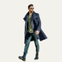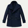 - Egenskaper: Dubbelknäppt fram, strukturerad krage, hel längd och funktionella sidofickor