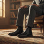 - Funktioner: Ikonisk slip-on Chelsea boot design med elastiska sidopaneler och dragflik