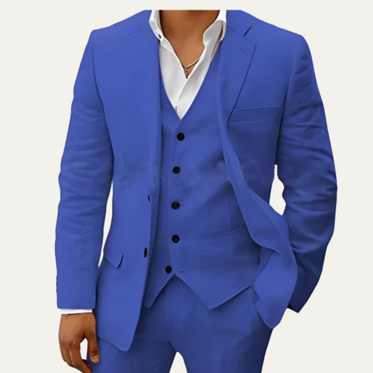 Egenskaper: 3-delad design (blazer, väst, byxor), lätt, rynkbeständig