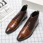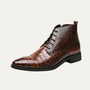 Steg in i djärv sofistikering med De Orvieto Kängorna. Tillverkade av premium texturerat läder med en rik brun finish, utstrålar dessa kängor raffinerad stil och självsäkerhet. Den intrikata krokodilpräglingen ger en lyxig touch, medan den slanka silhuetten och den spetsiga tån gör dem till det perfekta valet för män som vill sticka ut med stil.