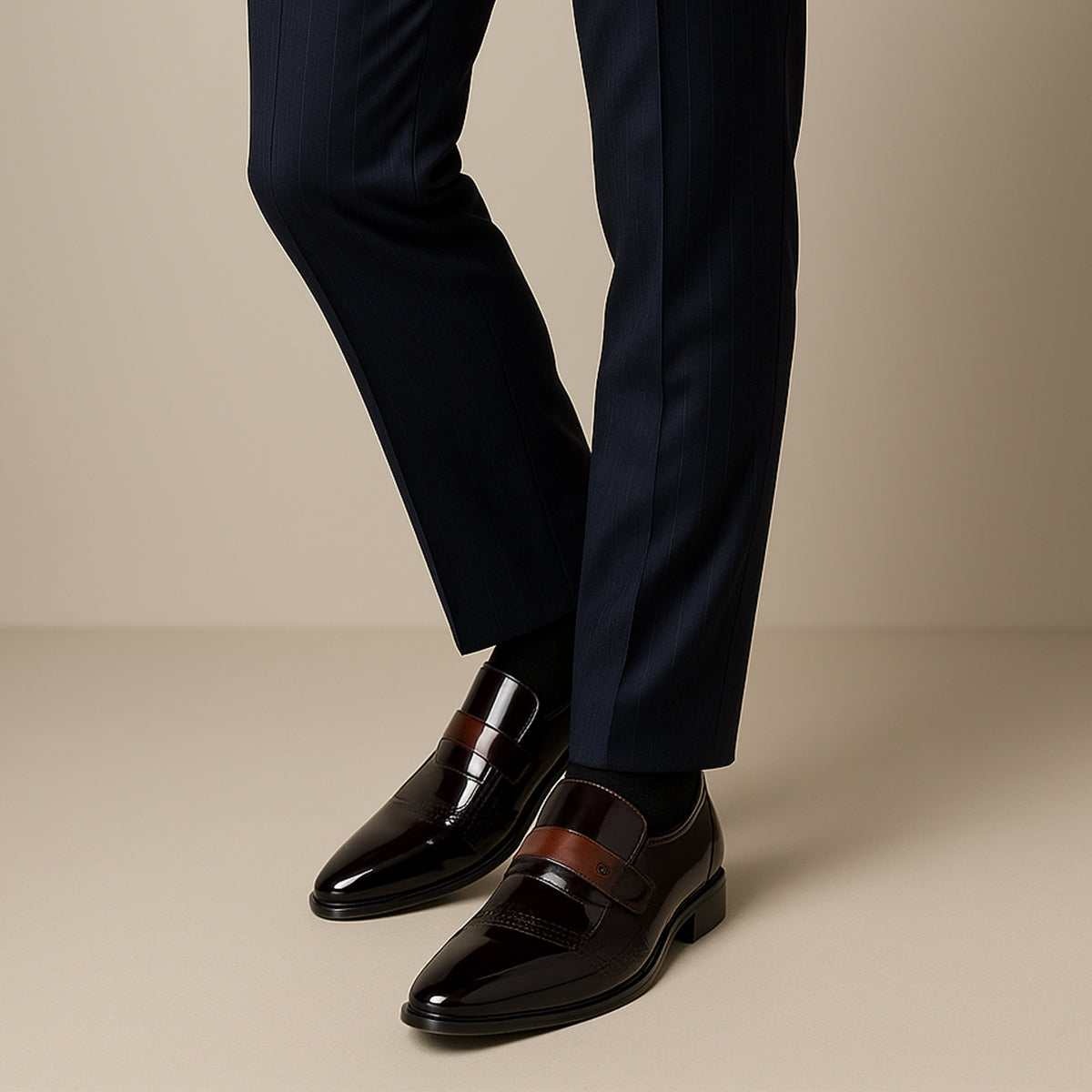 Gör varje steg betydelsefullt med Sirmione Loafers, där lyxig design möter vardaglig sofistikering. Professionellt tillverkade av premium lackläder, erbjuder dessa slip-on formella skor en slank, polerad finish som drar till sig uppmärksamhet. Det mjuka innerfoder och den dämpande innersulan säkerställer långvarig komfort, medan den hållbara sulan ger stabilitet för långvarig användning. Perfekta för bröllop, affärsevenemang eller eleganta kvällar, dessa loafers höjer din look med oansträngd finess och en tidlös glans.
