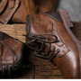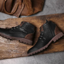 - Funktioner: Vintage läderfinish, robust mönstrad sula, dämpad innersula och ankelstöd