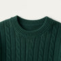 - Funktioner: Klassisk kabelstickad struktur med en elegant rund halsringning